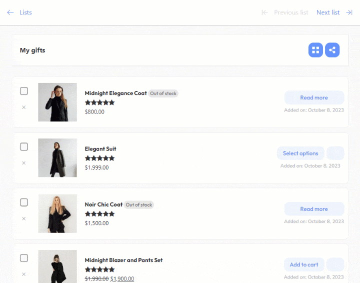 Option to show Mini Wishlist for counter or as a widget for sidebar.
