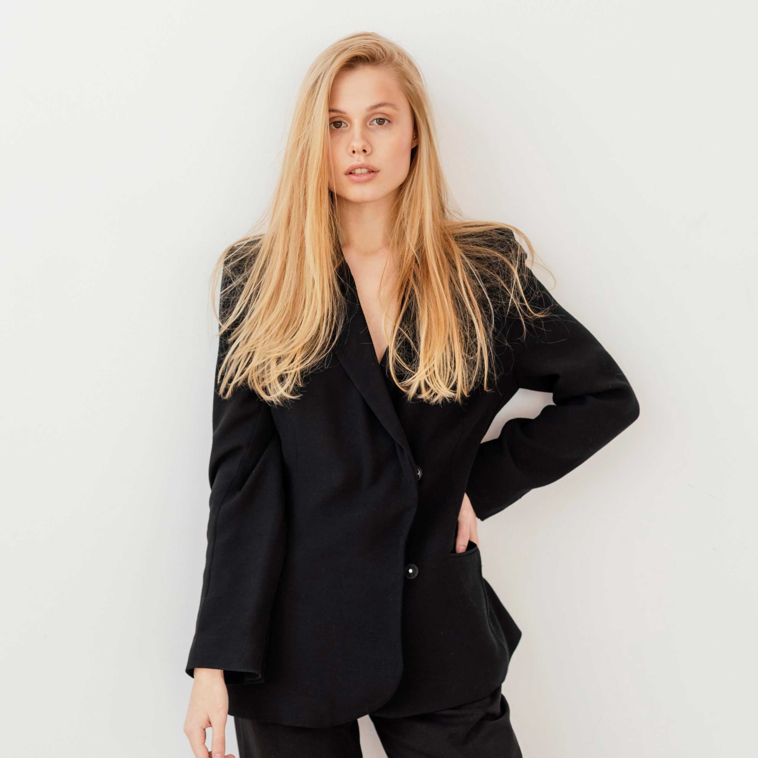 The sleek black design is versatile and can be dressed up or down, making it a great addition to any wardrobe. The coat features a comfortable fit with a button closure and two pockets for added convenience.